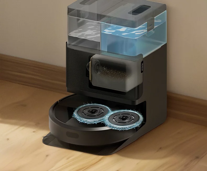 A takarítás után az AutoWash™ állomás automatikusan kimossa és megszárítja a felmosó párnákat, így a robot mindig készen áll a következő takarításra.