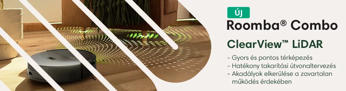 A Roomba Combo™ i5+ okos robot, ami tökéletesen porszívóz és felmos is egyben, egy mozdulat csak a tartályokat kicserélni, és indulhat a teljeskörű takarítás. Térképet készít az otthona padlójáról, így könnyedén vezérelheti Ön a takarítás az iRobot Home applikációról vagy hangvezérléssel.